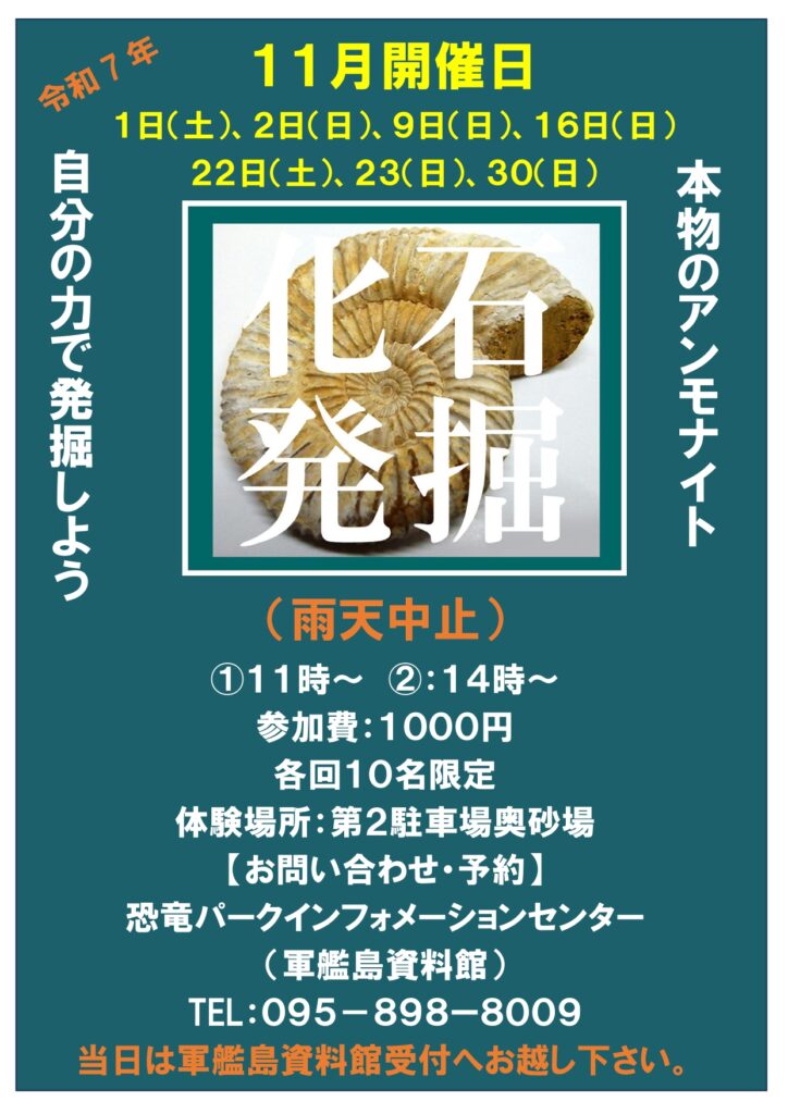 「アンモナイト化石発掘体験」11月開催日