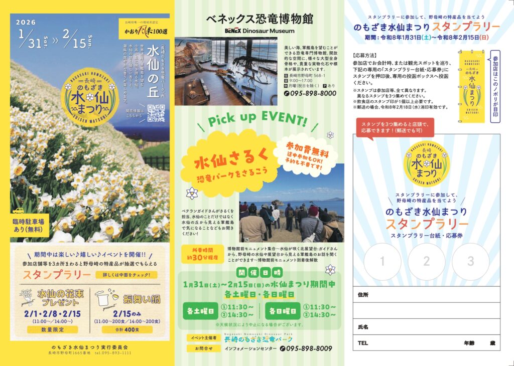 令和8年1月31日(土)~2月15日(日)の期間で「のもざき水仙まつり」が開催されます。