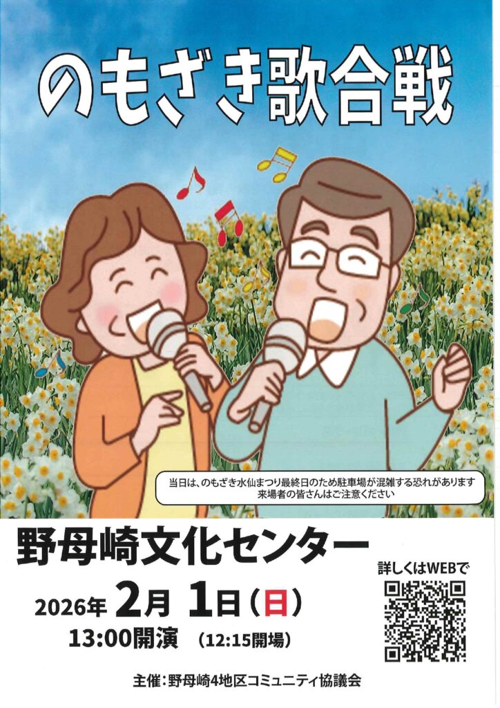 2月1日(日)野母崎文化センターにおいて「のもざき歌合戦」が開催されます。