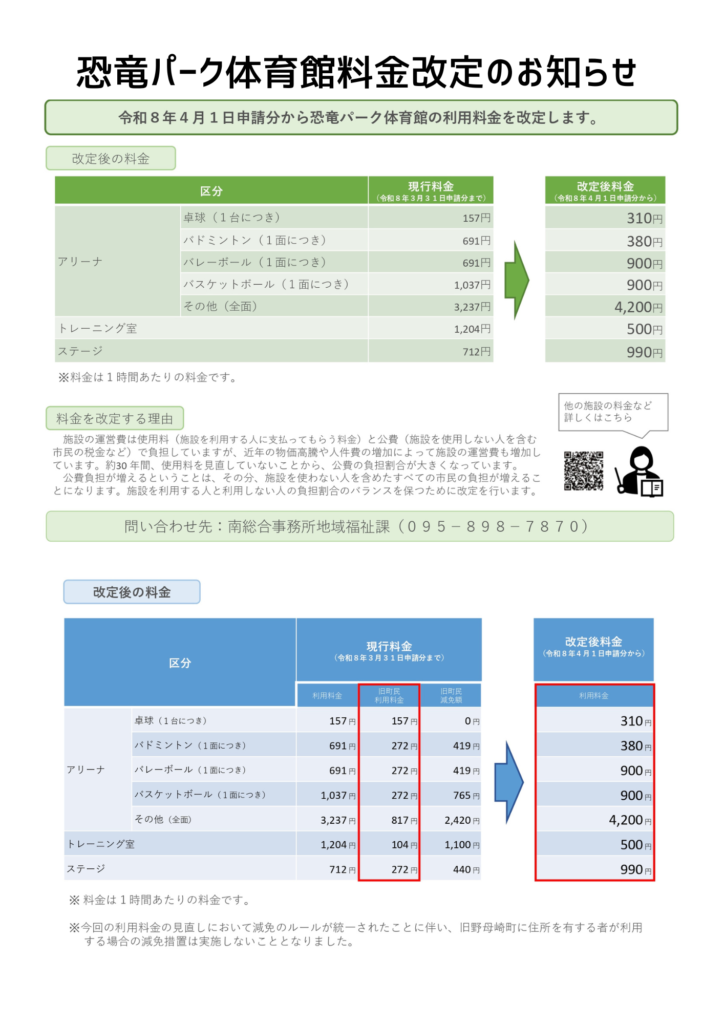 令和8年4月1日申請分から恐竜パーク体育館の料金が改定されます。
