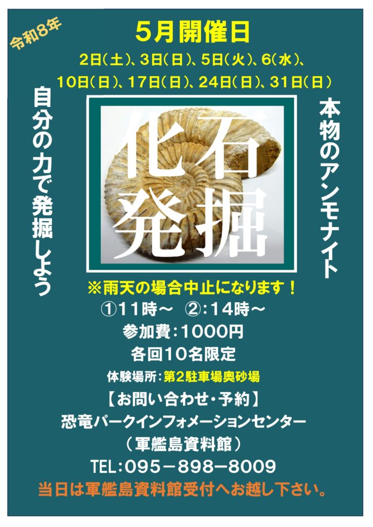 屋外開催は砂場にスタッフがアンモナイトの化石(実物)を埋めてお子さまに発掘体験してもらい持って帰るというイベントです。・・・ですが、童心に戻って発掘体験を楽しまれている大人の方もいらっしゃいます!どなたでも参加可能です。